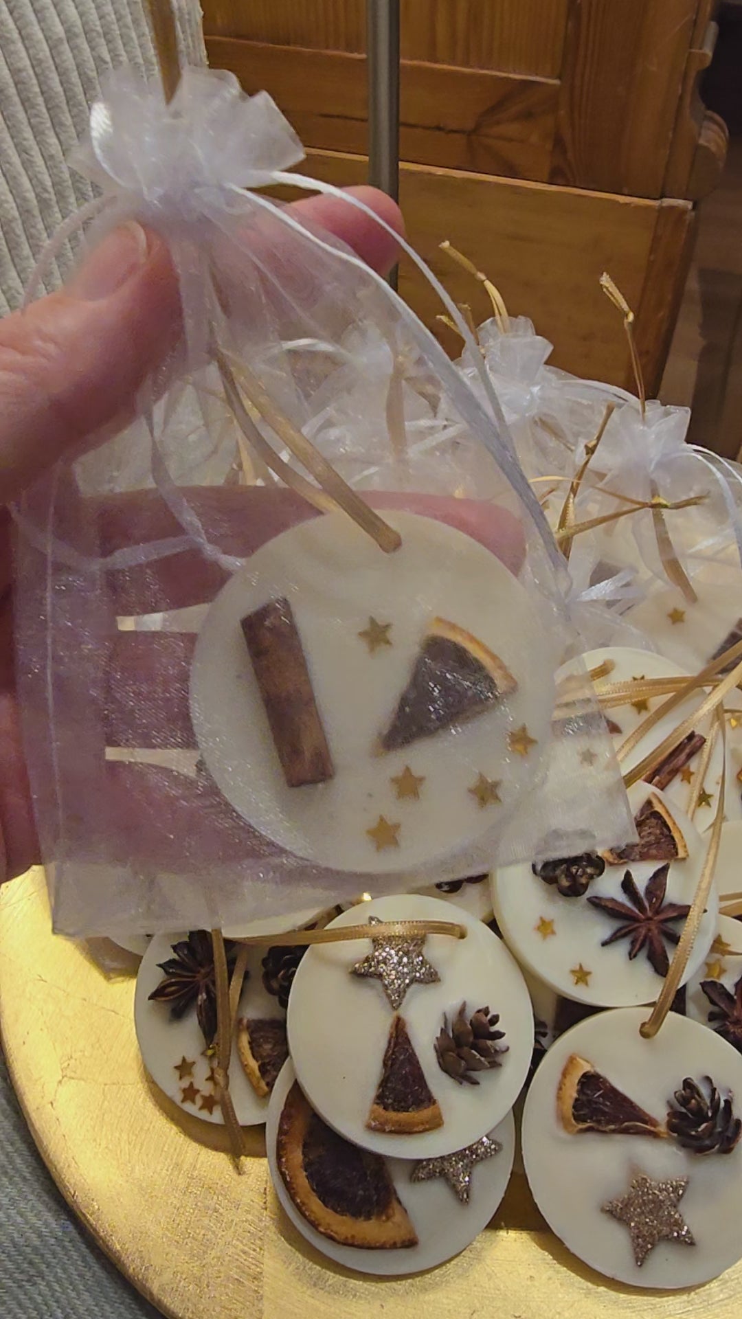 Diese wunderschönen Duftanhänger erfüllen den Raum sofort mit Weihnachtsduft und gemütlicher Stimmung. Du kannst die Anhänger in einem schönen Strauß aus Tannenzweigen oder direkt am Weihnachtsbaum aufhängen und sie genießen! Überall, wo Du sie plazierst, werden sie ihren wunderbaren Duft entfalten. Deiner Fantasie sind da keine Grenzen gesetzt.