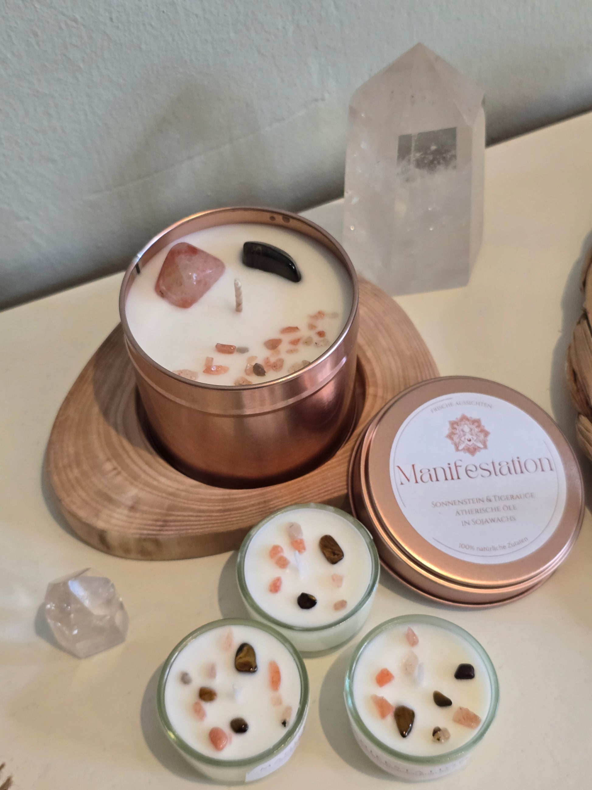 Dieses wunderschöne Teelicht ist ganz liebevoll mit Kristallsplittern von Sonnenstein & Tigerauge verziert - ganz wie bei der großen Schwester. Ich fertige jedes Teelicht von Hand, jedes Teelicht ist somit ein Unikat!